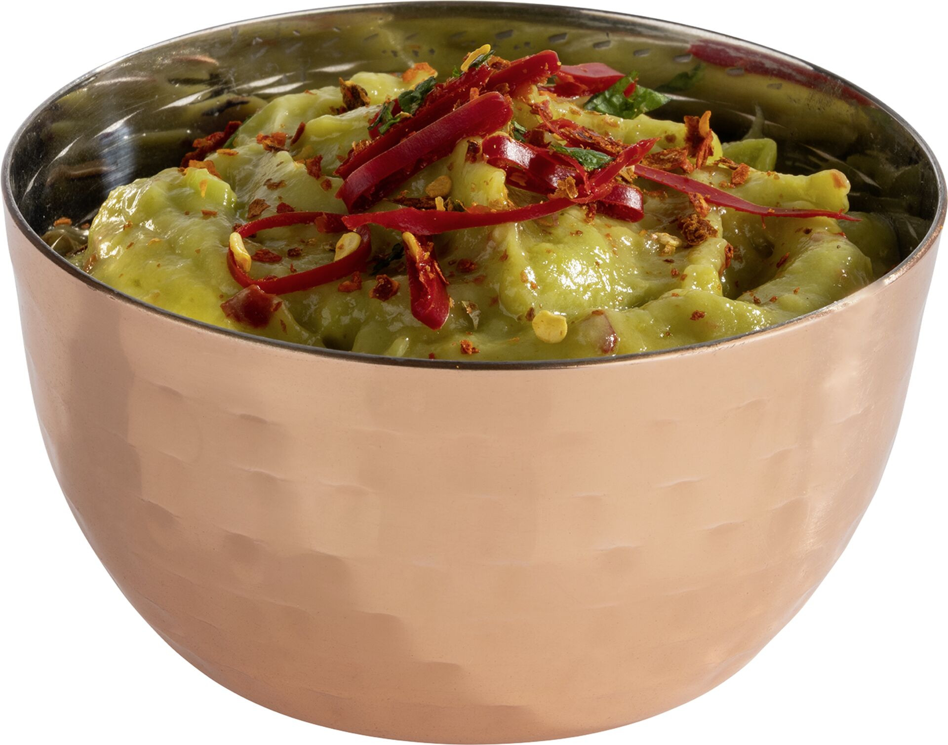 Edelstahl mit Kupferlook. Nicht spülmaschinengeeignet. Ausführung: rund Maße in cm: 8,3x4,5 Inhalt in ml: 275