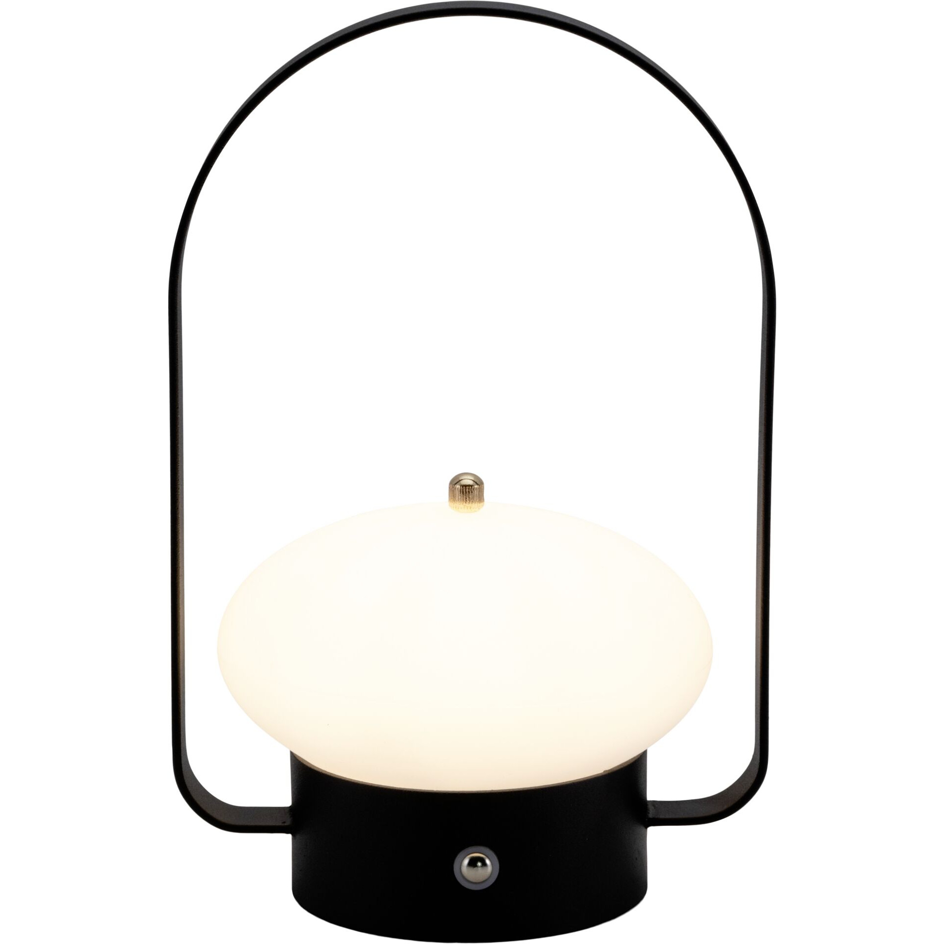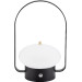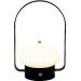 Tischleuchte mit integr. LED und Akku, schwarz. Stufenlos dimmbar. Wasserdicht nach IP54. Inkl. magnetischem USB Schnellladekabel. Lichttemperatur: 3000K. Die Standard-Lichtfarbe ist weiß, bei Betätigung des oberen Knopfes wird das Licht grün, um den Service anzufordern. Mit zunehmender Wartezeit wird das Grün intensiver.