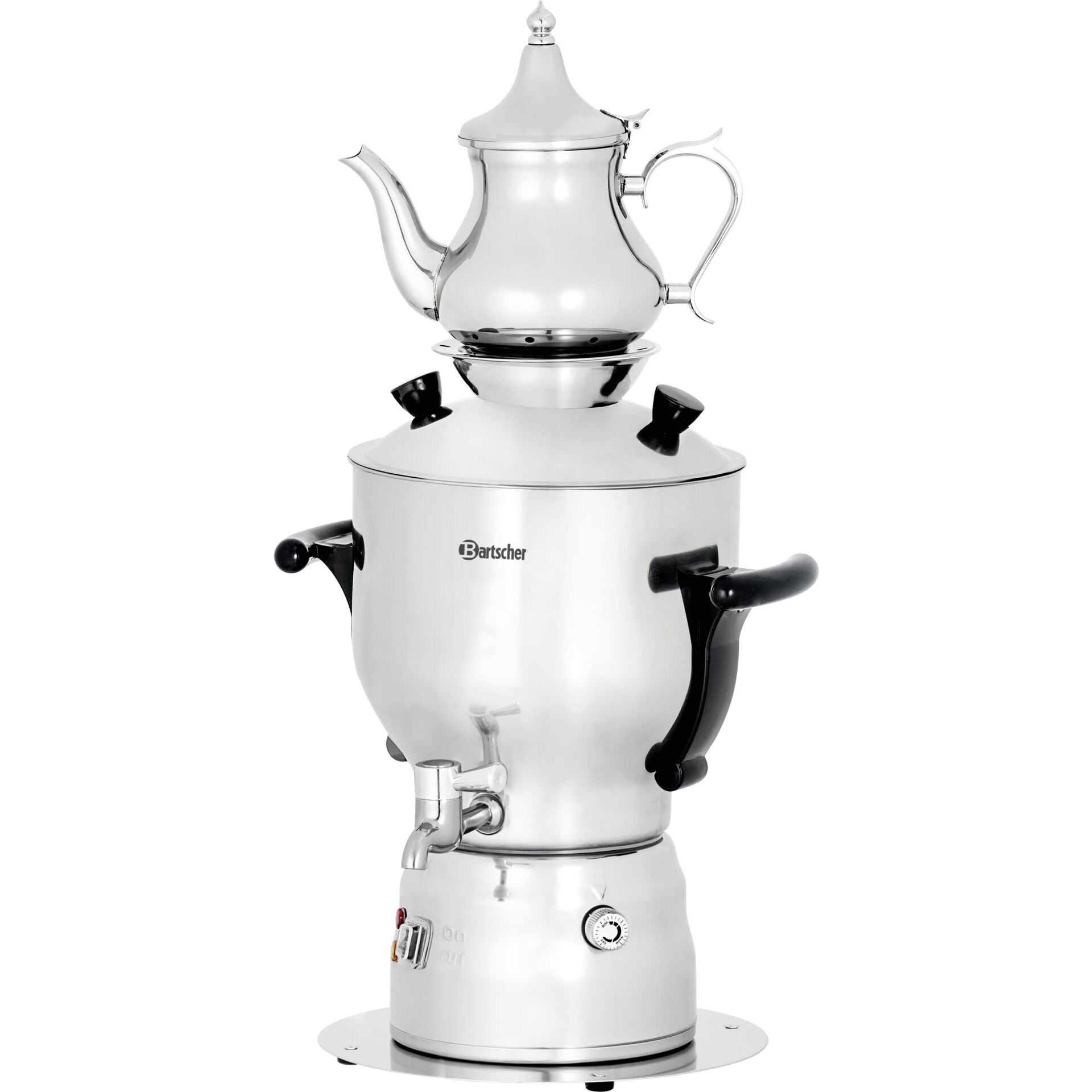 Edelstahl, stufenlose Temperaturregelung, Überhitzungsschutz, Warmhaltefunktion, Temperaturbereich 30°C-100°C, automatische Abschaltung, Gläser/Tassenhöhe max. 12,5 cm, inkl. 1 Teekanne Inhalt 1 Liter, Teesieb.